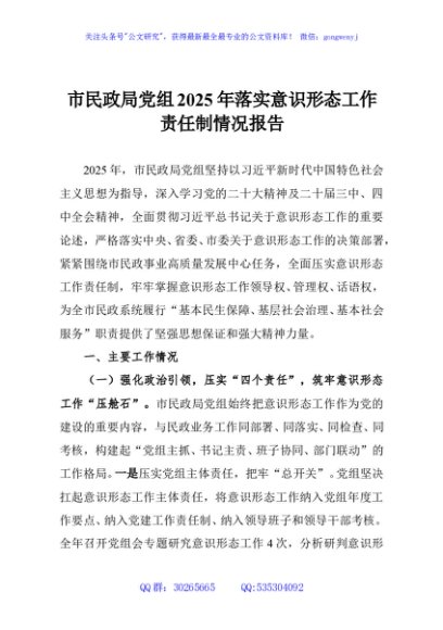 / 市民政局党组2025年落实意识形态工作责任制情况报告