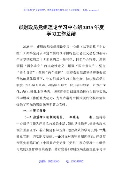 / 市财政局党组理论学习中心组2025年度学习工作总结