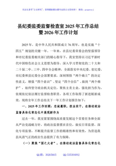 / 县纪委监委监督检查室2025年工作总结暨2026年工作计划