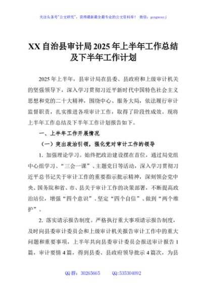 / XX自治县审计局2025年上半年工作总结及下半年工作计划