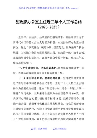 / 县政府办公室主任近三年个人工作总结(2023-2025)