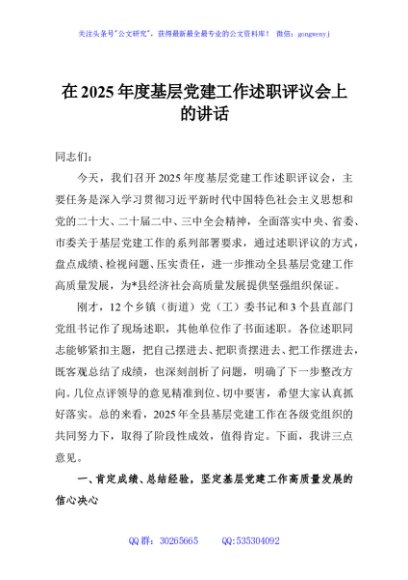 / 在2025年度基层党建工作述职评议会上的讲话