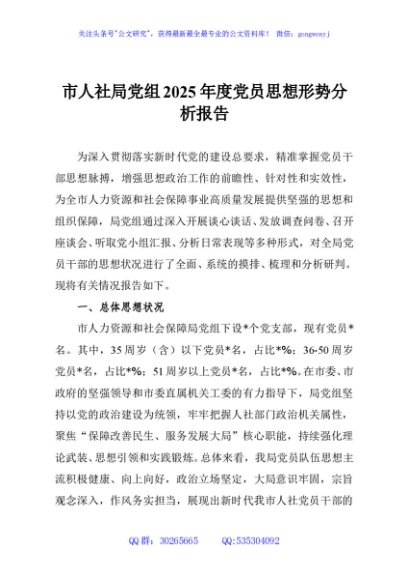 / 市人社局党组2025年度党员思想形势分析报告
