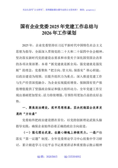 / 国有企业党委2025年党建工作总结与2026年工作谋划