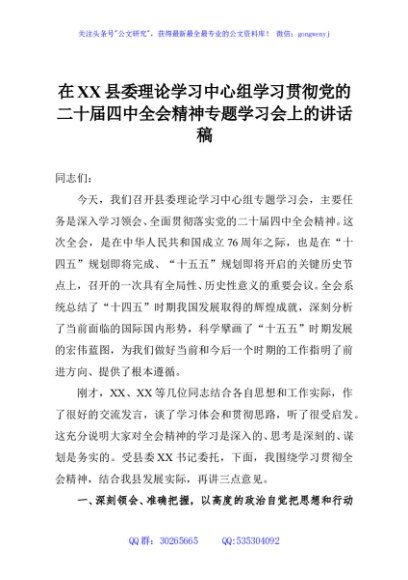 / 在XX县委理论学习中心组学习贯彻党的二十届四中全会精神专题学习会上的讲话稿