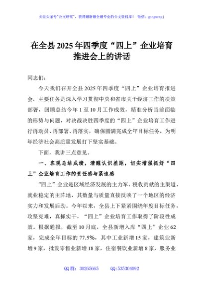 / 在全县2025年四季度“四上”企业培育推进会上的讲话