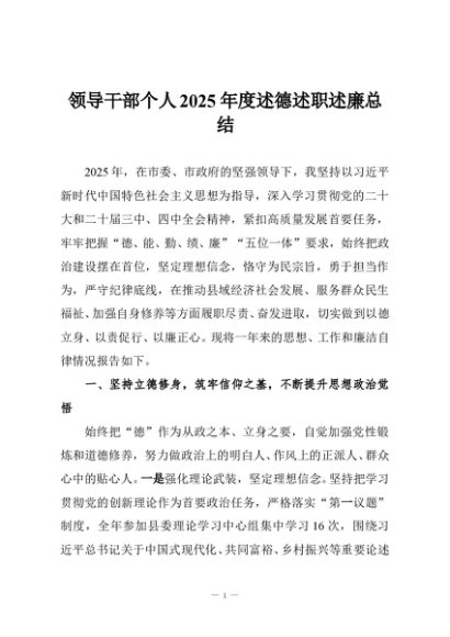 / 领导干部个人2025年度述德述职述廉总结