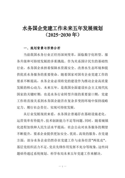 / 水务国企党建工作未来五年发展规划(2025-2030年)