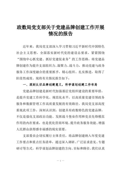 / 政数局党支部关于党建品牌创建工作开展情况的报告