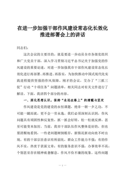 / 在进一步加强干部作风建设常态化长效化推进部署会上的讲话