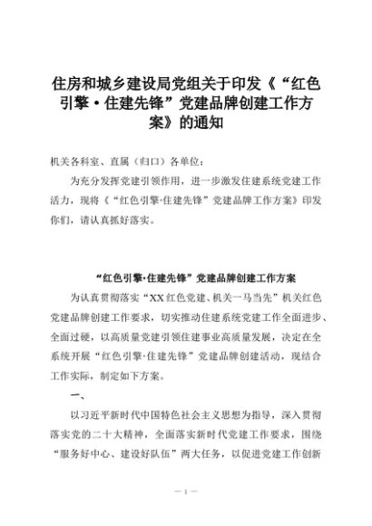 / 住房和城乡建设局党组关于印发《“红色引擎·住建先锋”党建品牌创建工作方案》的通知