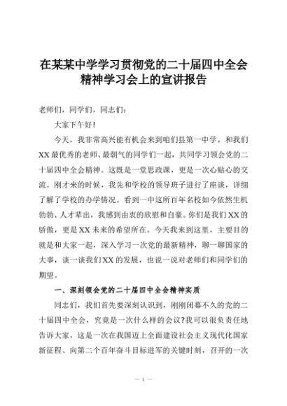 / 在某某中学学习贯彻党的二十届四中全会精神学习会上的宣讲报告