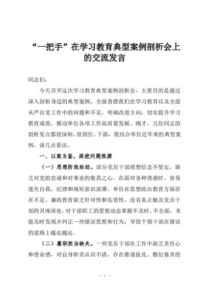 / “一把手”在学习教育典型案例剖析会上的交流发言