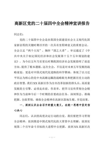 / 高新区党的二十届四中全会精神宣讲报告