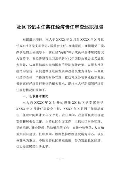 / 社区书记主任离任经济责任审查述职报告