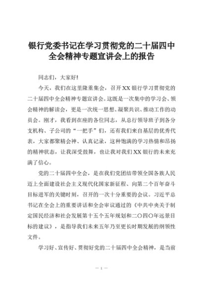/ 银行党委书记在学习贯彻党的二十届四中全会精神专题宣讲会上的报告
