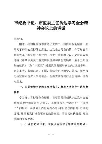 / 市纪委书记、市监委主任传达学习全会精神会议上的讲话