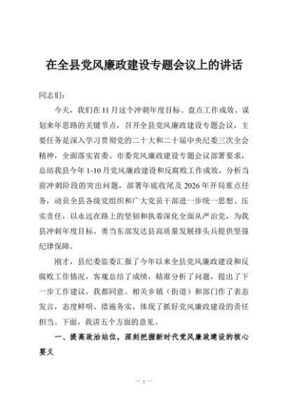 / 在全县党风廉政建设专题会议上的讲话