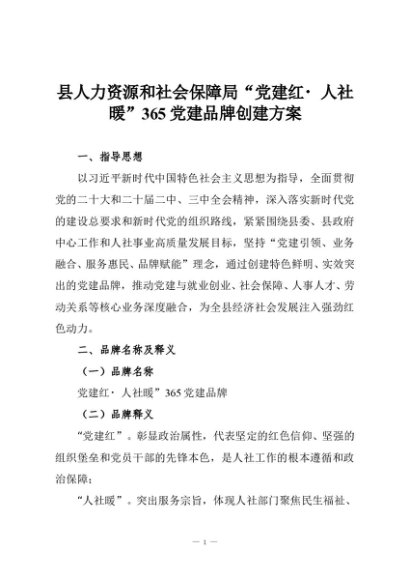 / 县人力资源和社会保障局“党建红・人社暖”365党建品牌创建方案