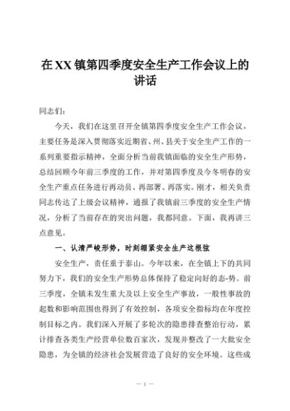 / 在XX镇第四季度安全生产工作会议上的讲话