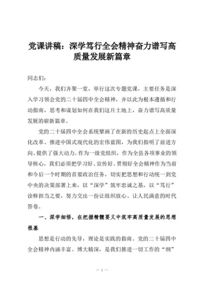 / 党课讲稿:深学笃行全会精神奋力谱写高质量发展新篇章