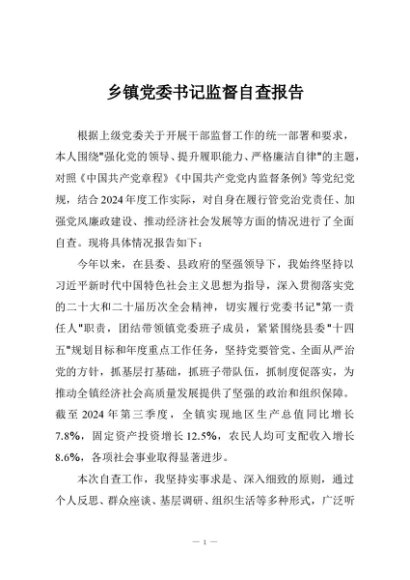 / 乡镇党委书记监督自查报告