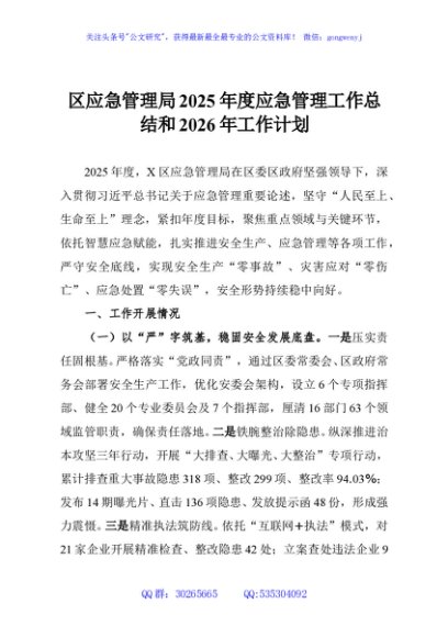 / 区应急管理局2025年度应急管理工作总结和2026年工作计划