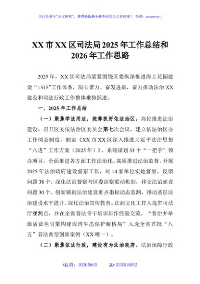 / XX市XX区司法局2025年工作总结和2026年工作思路