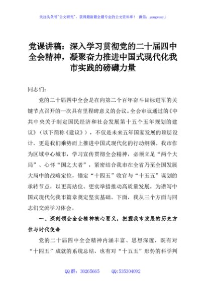 / 党课讲稿:深入学习贯彻党的二十届四中全会精神,凝聚奋力推进中国式现代化我市实践的磅礴力量