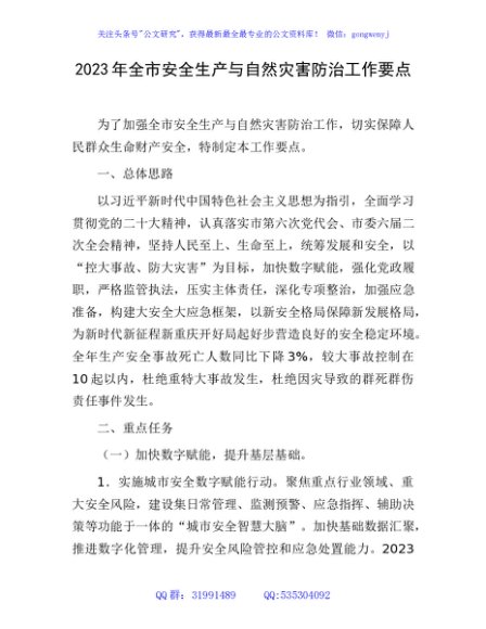 / 2023年全市安全生产与自然灾害防治工作要点