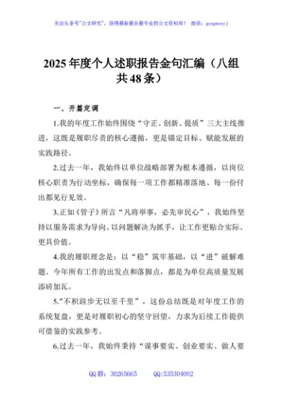 / 2025年度个人述职报告金句汇编(八组共48条)