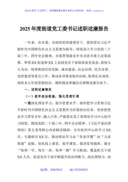 / 2025年度街道党工委书记述职述廉报告