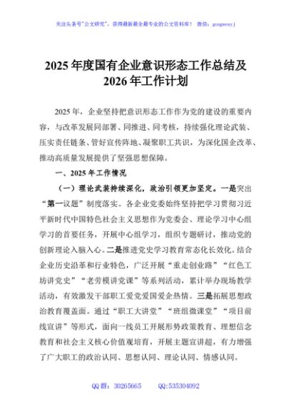 / 2025年度国有企业意识形态工作总结及2026年工作计划