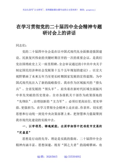 / 在学习贯彻党的二十届四中全会精神专题研讨会上的讲话