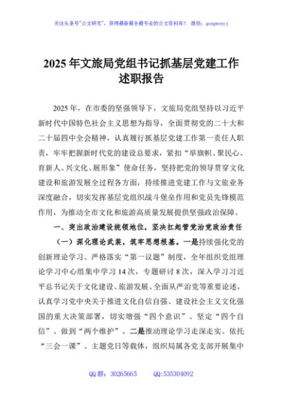 / 2025年文旅局党组书记抓基层党建工作述职报告