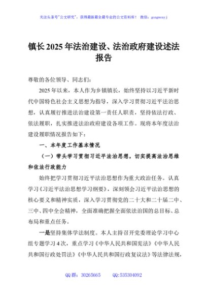 / 镇长2025年法治建设、法治政府建设述法报告