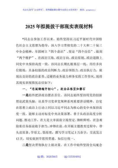 / 2025年拟提拔干部现实表现材料