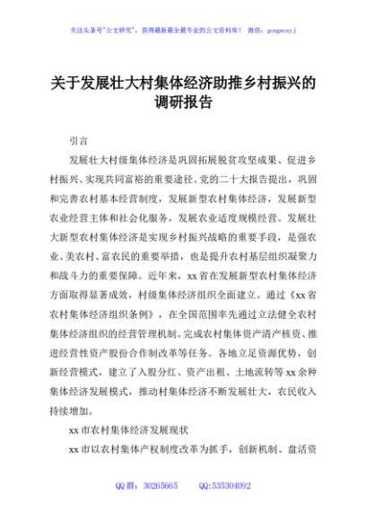/ 关于发展壮大村集体经济助推乡村振兴的调研报告