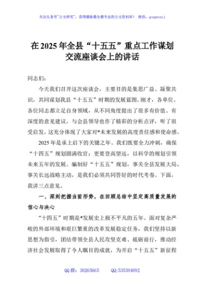 / 在2025年全县“十五五”重点工作谋划交流座谈会上的讲话