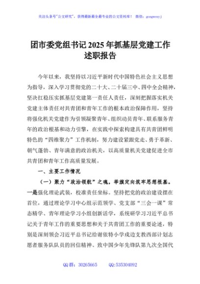 / 团市委党组书记2025年抓基层党建工作述职报告