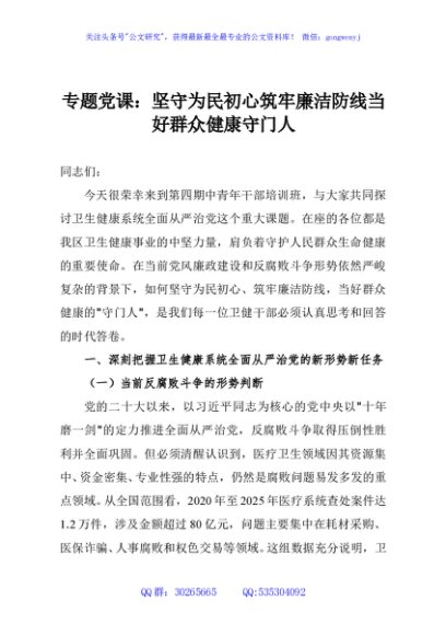 专题党课:坚守为民初心筑牢廉洁防线当好群众健康守门人