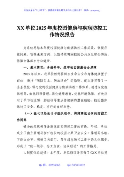 / XX单位2025年度校园健康与疾病防控工作情况报告