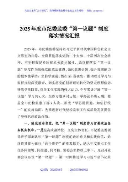 / 2025年度市纪委监委“第一议题”制度落实情况汇报