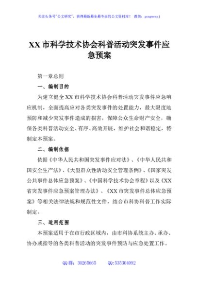 / XX市科学技术协会科普活动突发事件应急预案