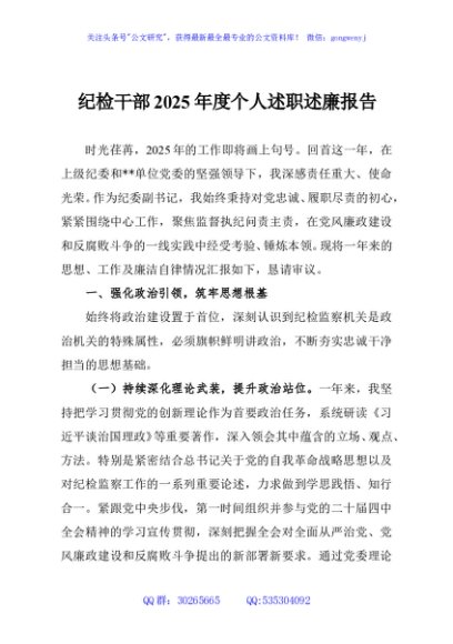 / 纪检干部2025年度个人述职述廉报告