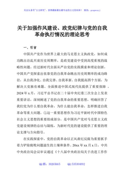 / 关于加强作风建设、政党纪律与党的自我革命执行情况的理论思考