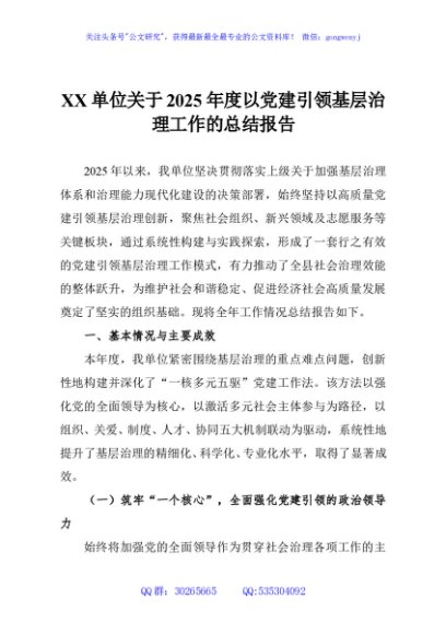 / XX单位关于2025年度以党建引领基层治理工作的总结报告