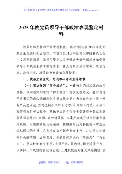 / 2025年度党员领导干部政治表现鉴定材料