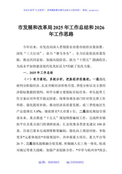 / 市发展和改革局2025年工作总结和2026年工作思路