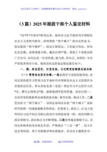 / (3篇)2025年提拔干部个人鉴定材料